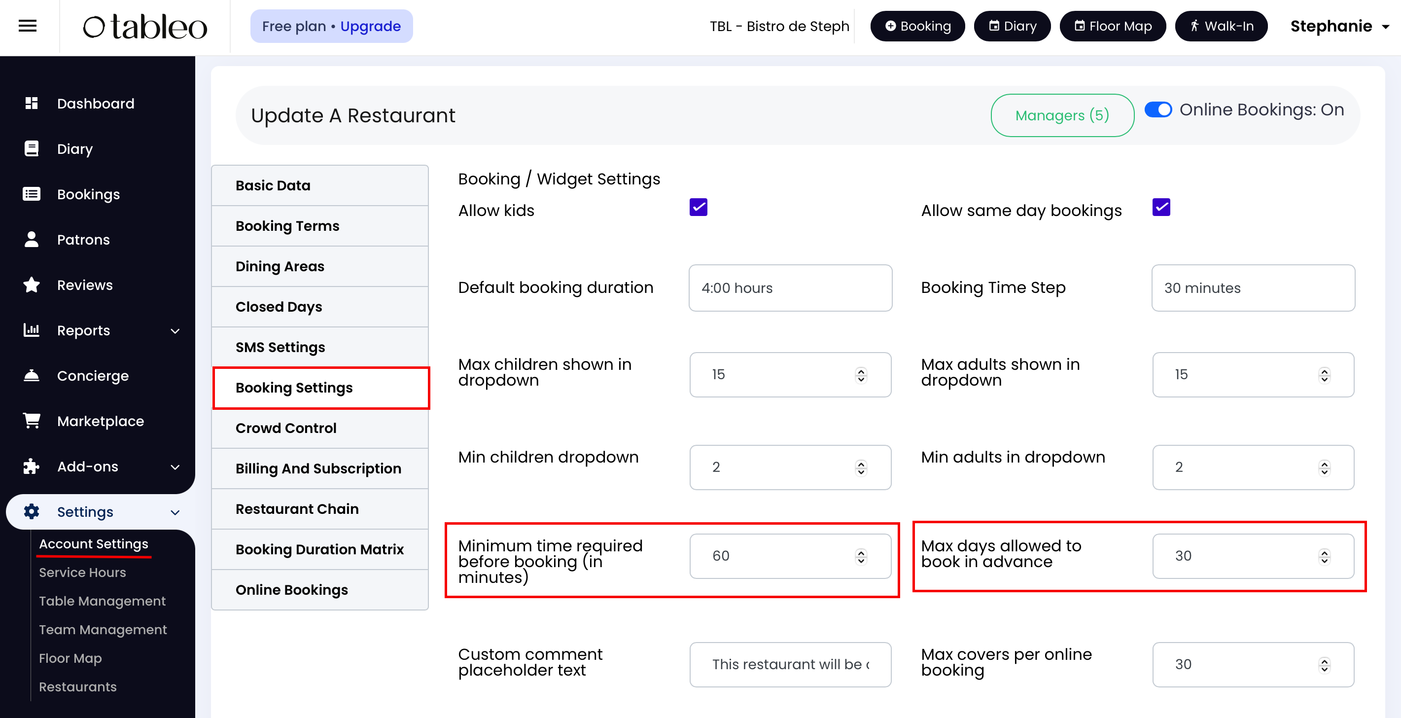1. From the side menu, go to: Settings > Advanced Settings > Booking Settings