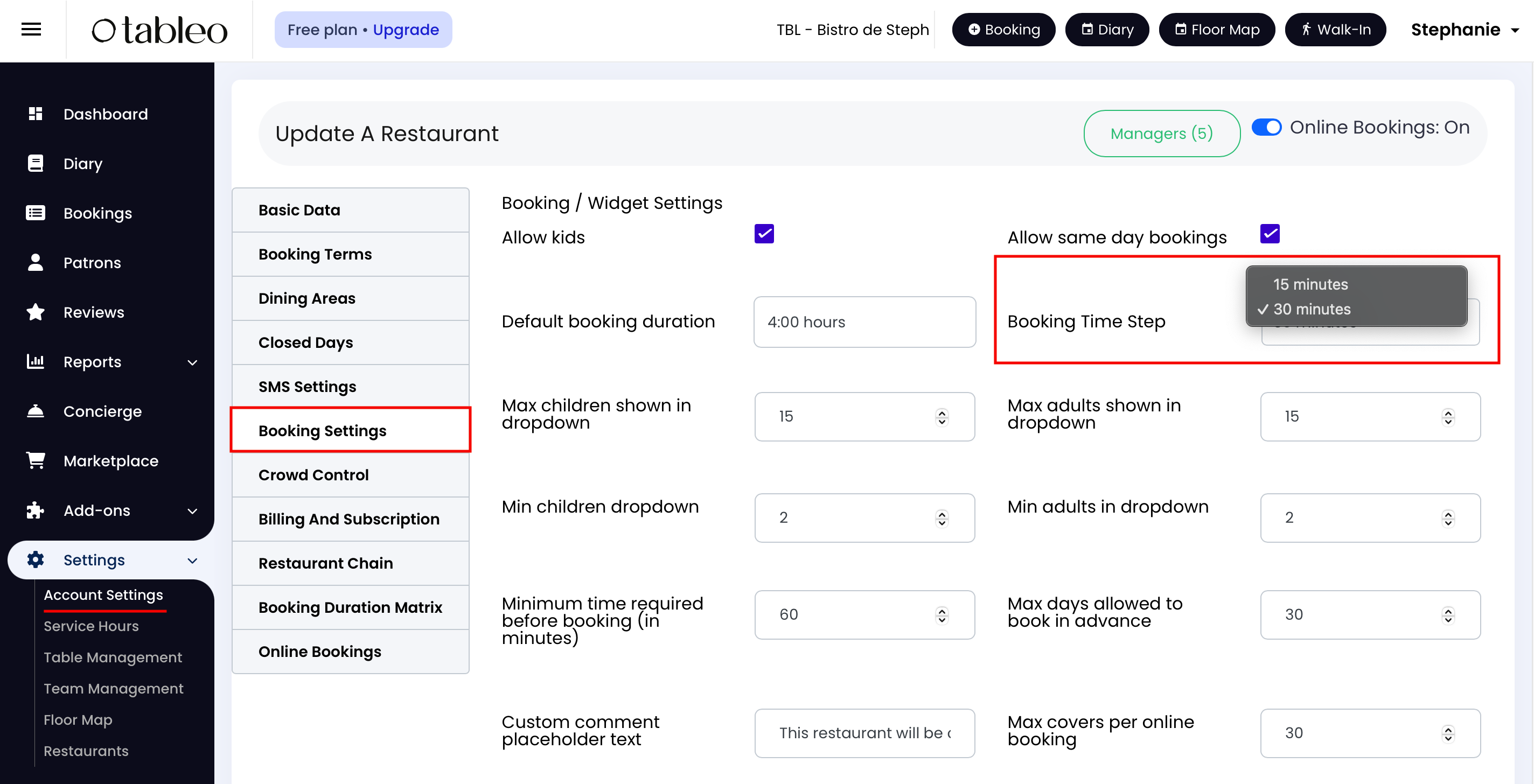 2. Choose the desired time limit from the drop-down menu called 'Booking Time Step'.