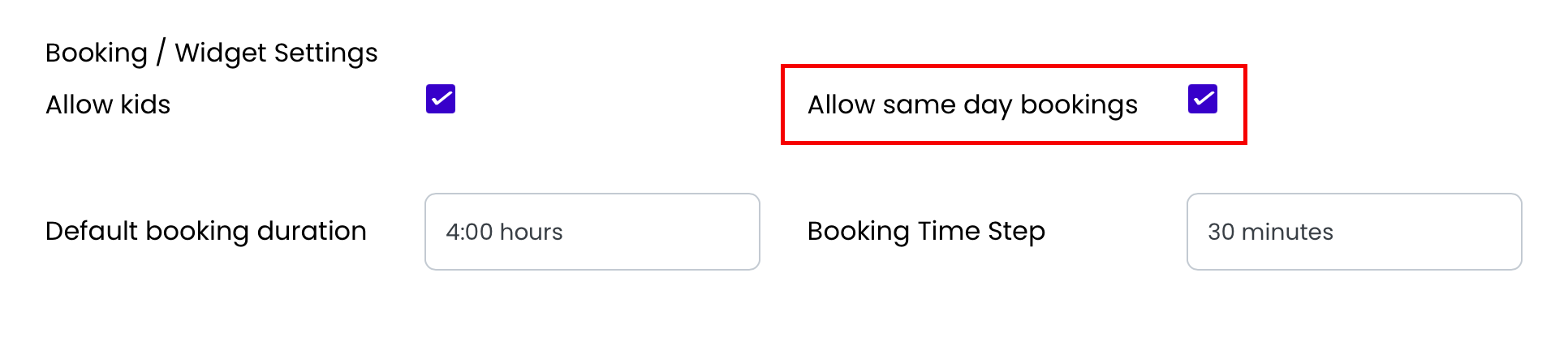 2. Tick or untick the 'Allow on day bookings' box accordingly.