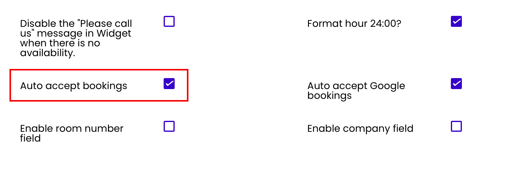 2. Tick or untick the 'Auto accept bookings' box as desired.