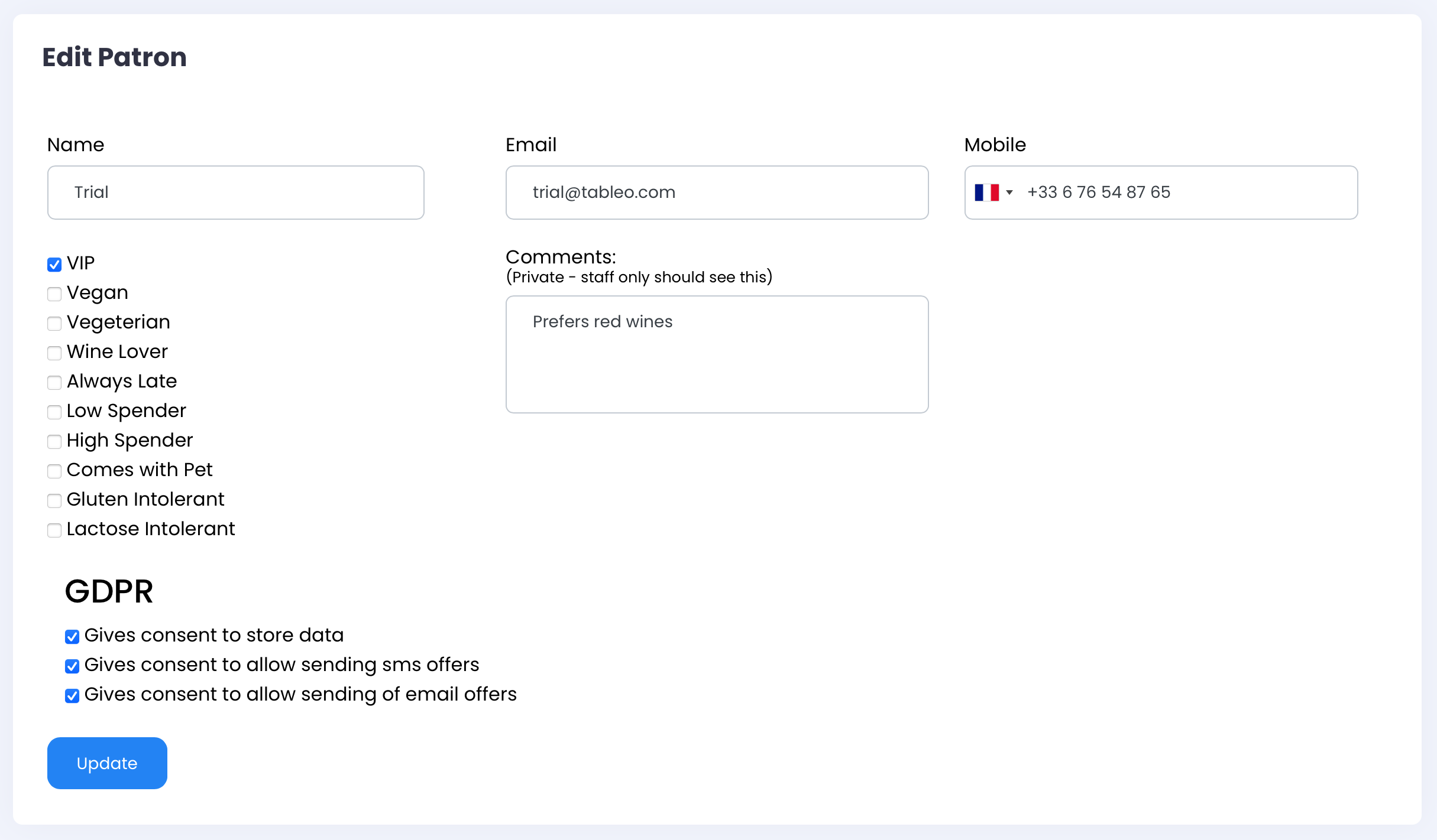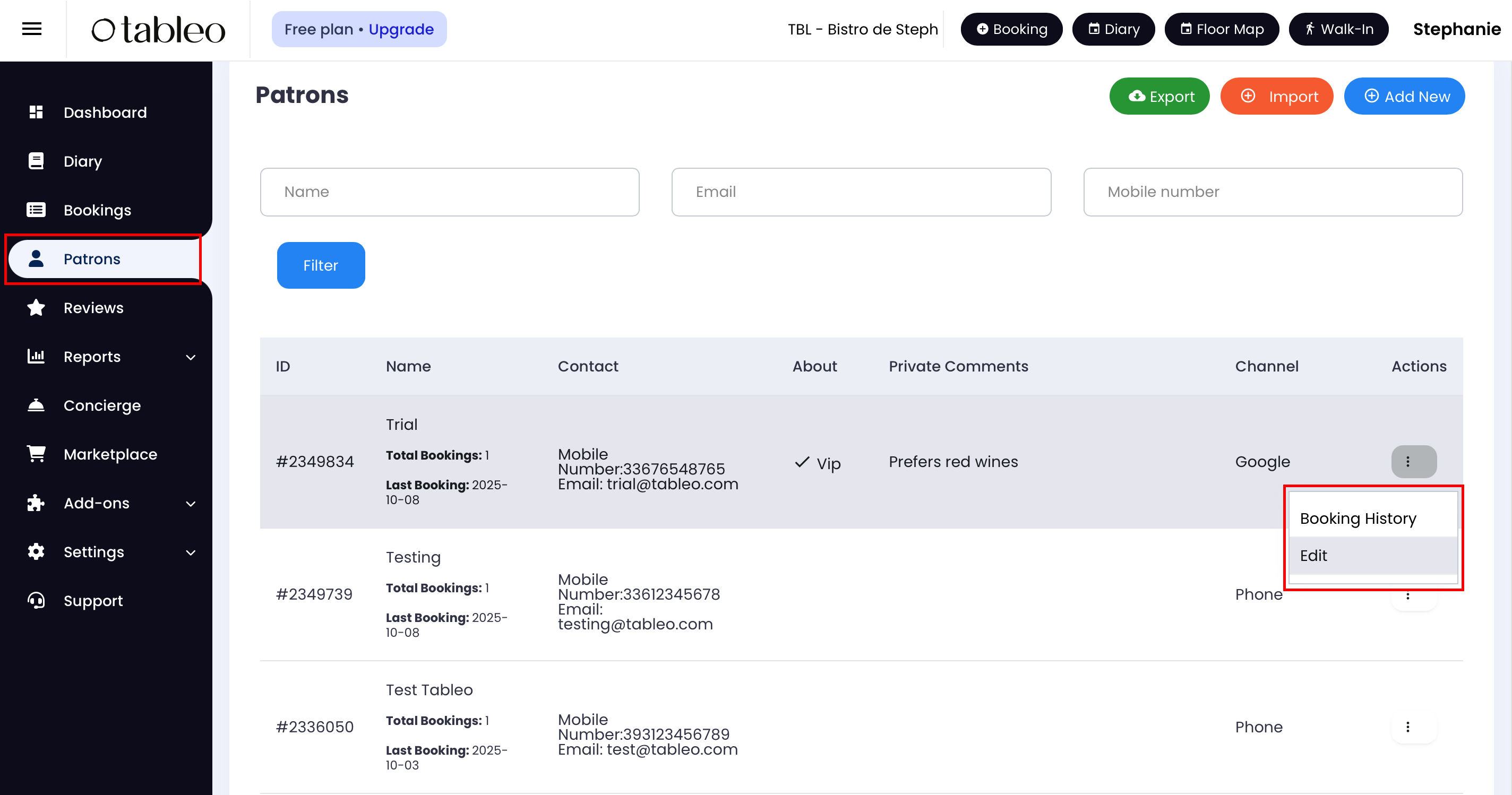 4. Choose Edit to change any customer details, or you can choose to see their Booking History.