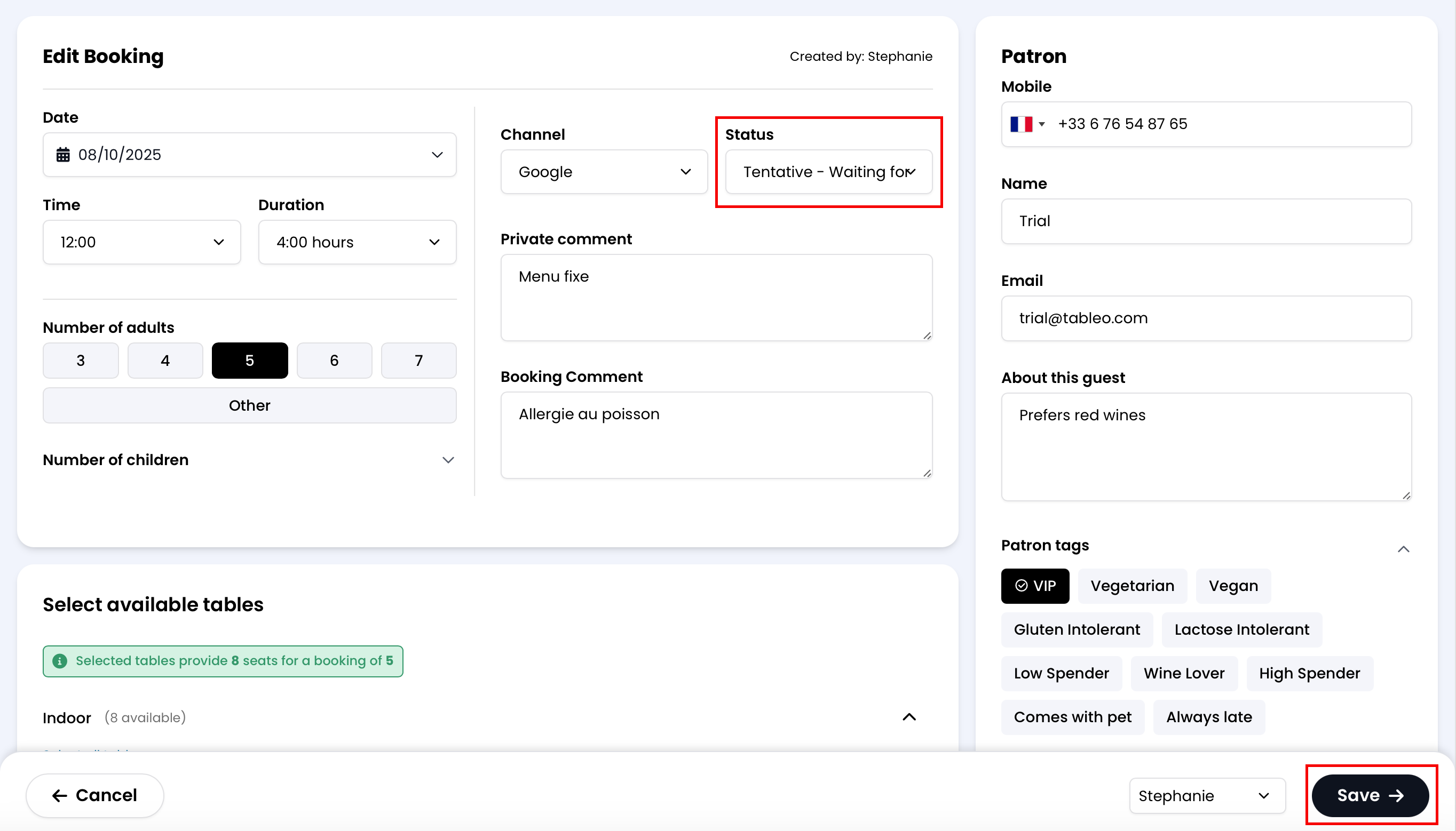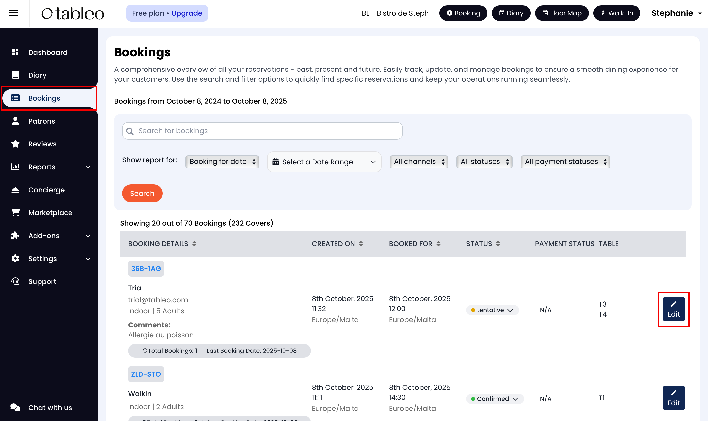 2. Choose the booking that you want to mark as a no-show, and click Edit.
