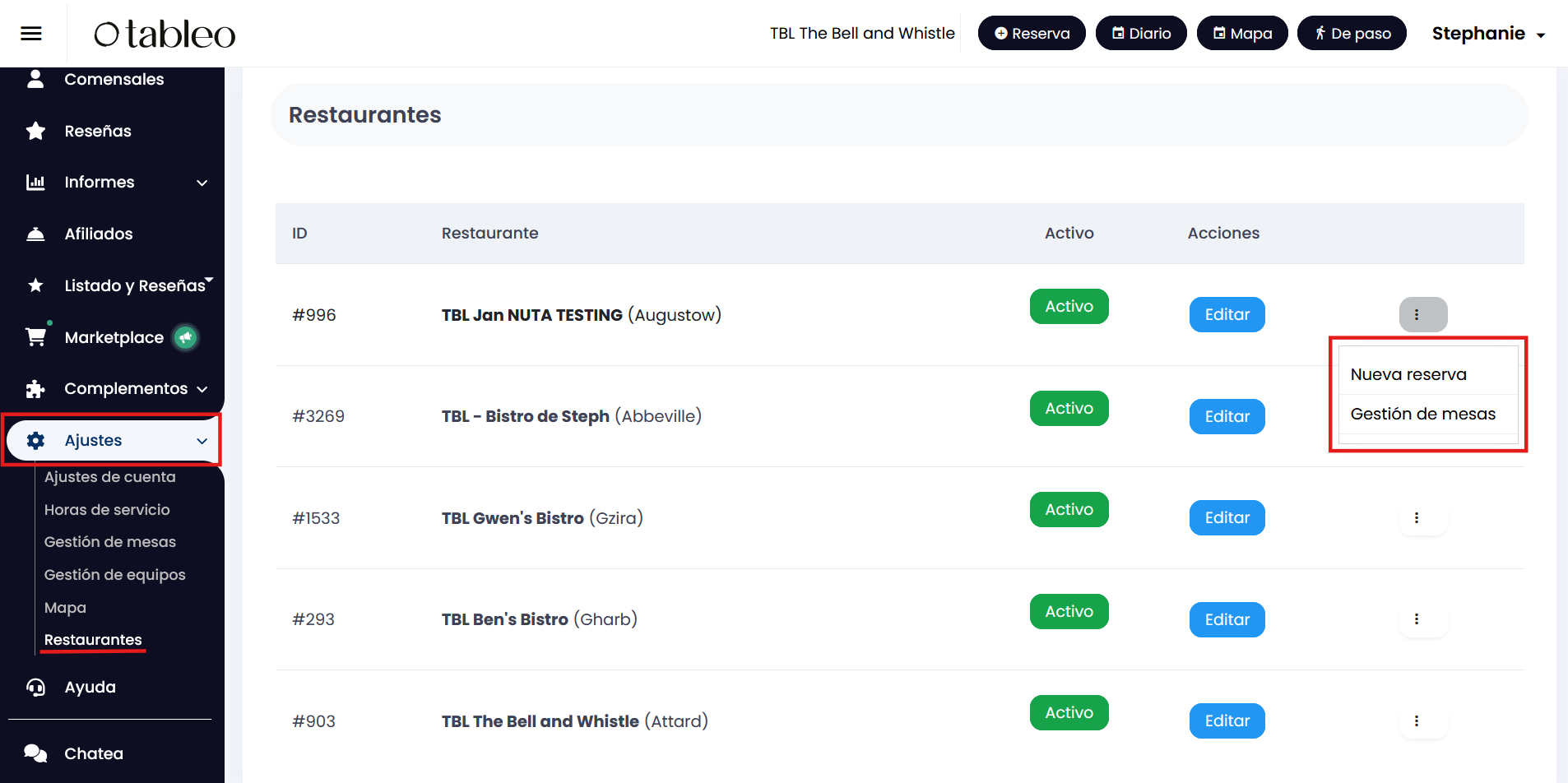 Alternativamente, si deseas ver tus restaurantes o agregar reservas a ellos: