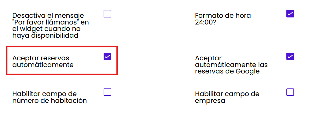 2. Marca o desmarca la casilla de ‘Aceptar reservas automáticamente’ según lo desees.
