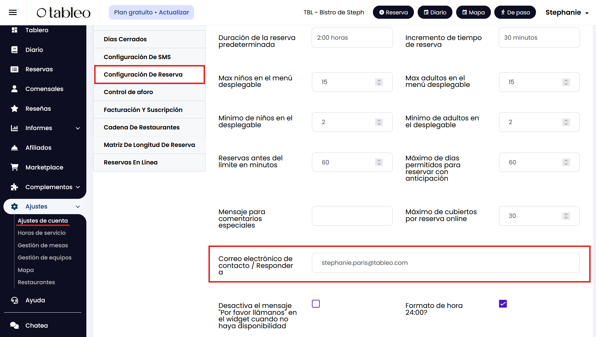 1. Ve a Ajustes > Ajustes de cuenta > Configuración de reserva