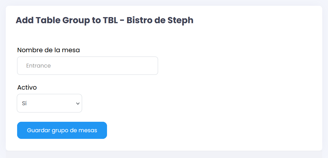 4. Introduzca el nombre de la tabla para su grupo y haga clic en Guardar grupo de mesas.