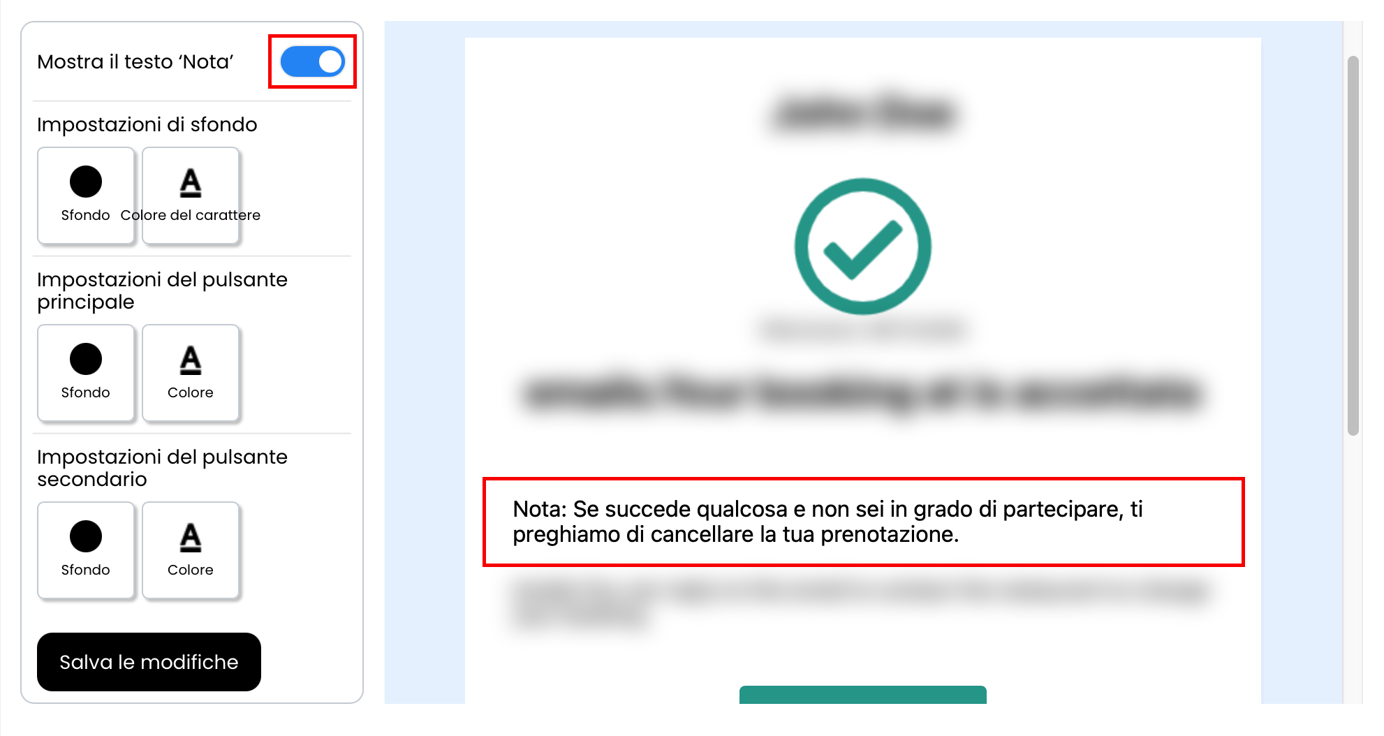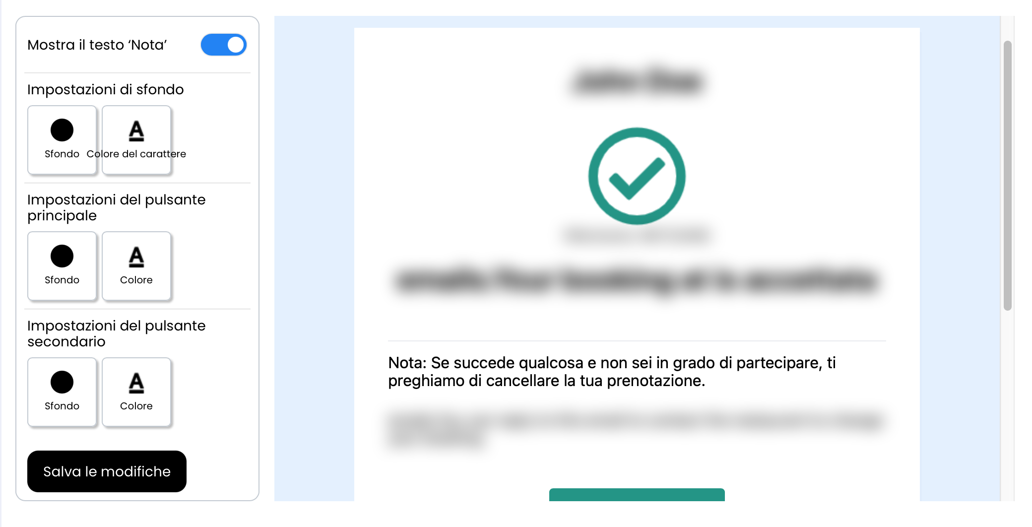 Dal menu laterale, vai su Impostazioni > Impostazioni prenotazioni > Personalizzazione email.